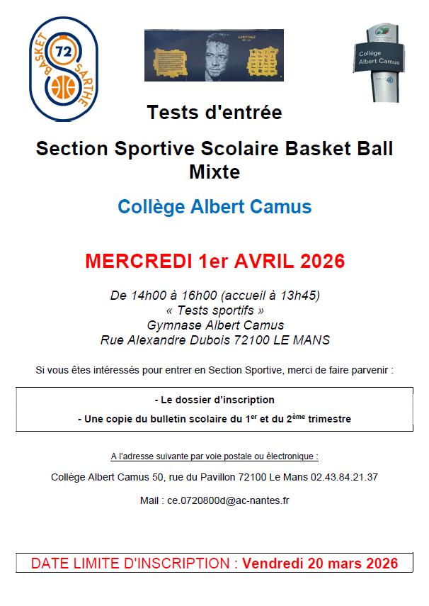 Rejoins la Section Sportive Basket du Collège Albert Camus !
